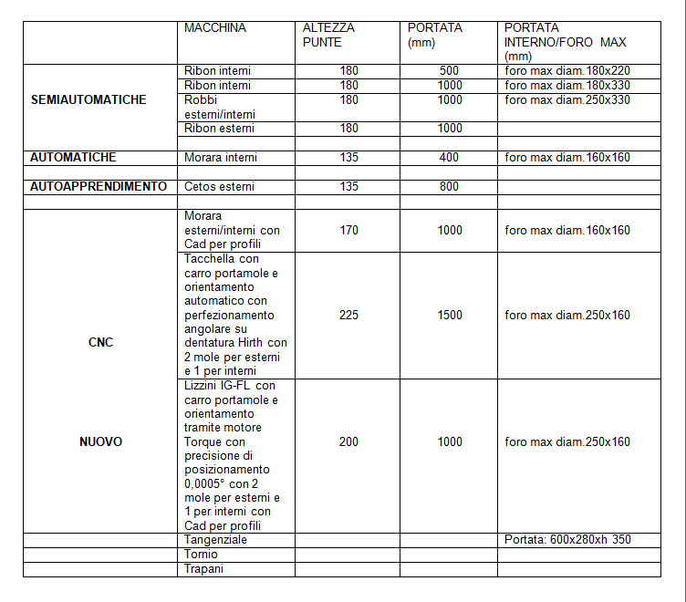 • rettifica per interni fino a 300 mm di lunghezza e 350 mm di diametro
